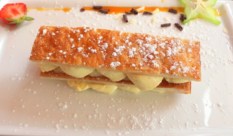- Le vivier : Ce joli restaurant est situé sur le port d’Erquy. Les patrons avaient auparavant un restaurant gastronomique et cela se ressent vraiment dans la cuisine. Avec Florent, nous avons tous les deux adoré ce que nous avons mangé. J’ai choisi des huîtres et des moules, classique mais vraiment délicieux. Surtout qu’on est fan des fruits de mer comme moi. Et Florent a choisi un menu à 23€ avec des tartines de magret et chèvre, un bon morceau de viande et un mille-feuille revisité à l’ananas et aux fruits de la passion. Vous avez des menus un peu pour tous les tarifs, ils commencent aux alentours de 18€.