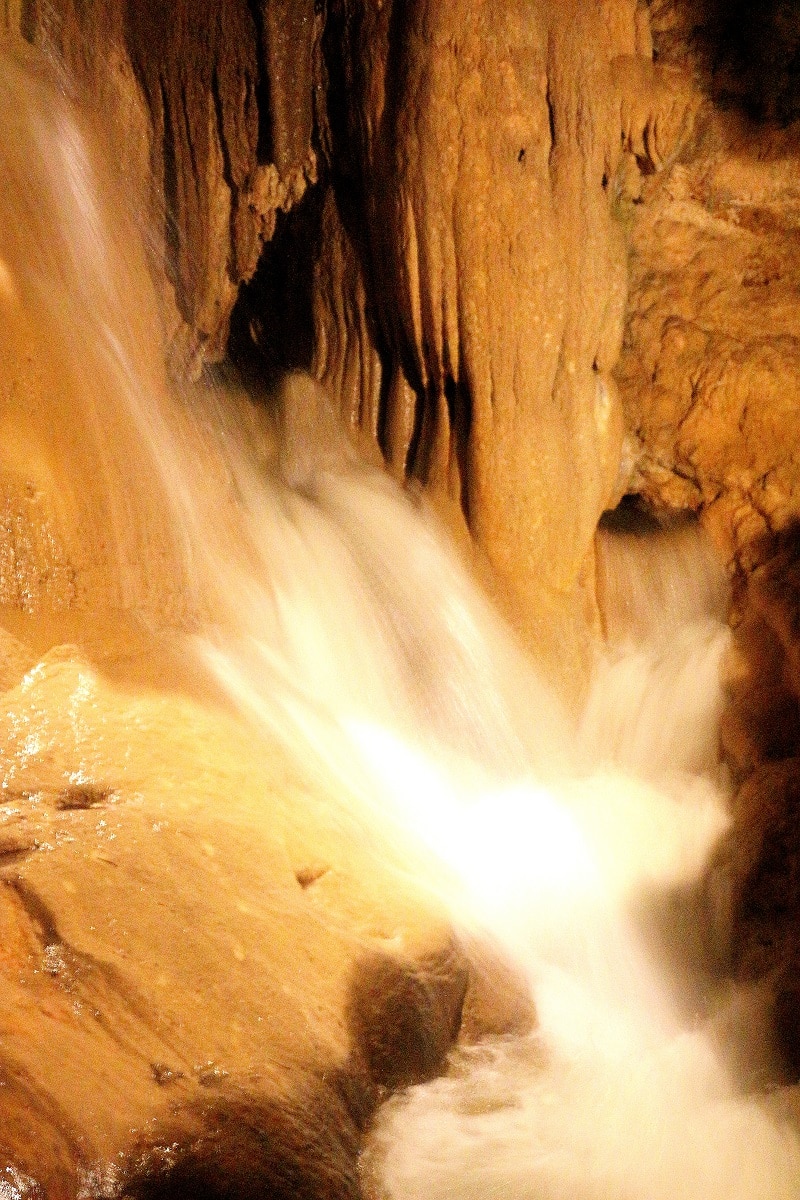 La visite de ses grottes commence à bord d’un train électrique. Un peu comme le train de la mine de Disney, oui oui je confirme, j’étais comme une enfant! Le train nous conduit à 400m dans la grotte. Et c’est parti pour 1h30 de visite guidée, à pied, au cœur de 1.6 km de souterrains. Dès le départ, on commence avec la salle du chaos, j’ai eu comme cette impression de partir en voyage au centre le la Terre. Durant plus d’une heure, se succède, plus de 150 millions d’années d’histoire, de cristaux, de monde féeriques, et d’animaux légendaires à travers différentes salles. La visite se termine par la salle des merveilles, où les lucioles envahissent le silence. Et où les lumières jouent avec l’eau et votre imagination et vous font croire à des gouffres sous vos pieds.