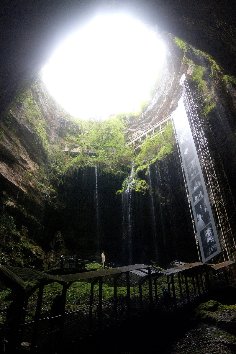 Le gouffre n’est que l’entrée de la visite. Il est tout de même impressionnant puisqu’il a un diamètre de 35 mètres et une profondeur de 70 mètres. Lors de notre visite, il pleuvait à verse, alors nous avons eu la chance de voir de sublimes cascades naturelles tout le long de notre parcours.